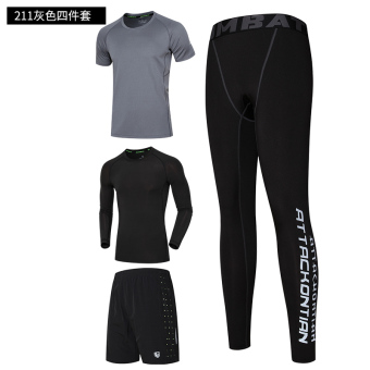 Shop Online Sports fitness room autumn and winter ultra-stretch slim fit clothing training clothing fitness clothing (211 gray + 707 + 271 + 103 four sets of send arm package) in Philippines
